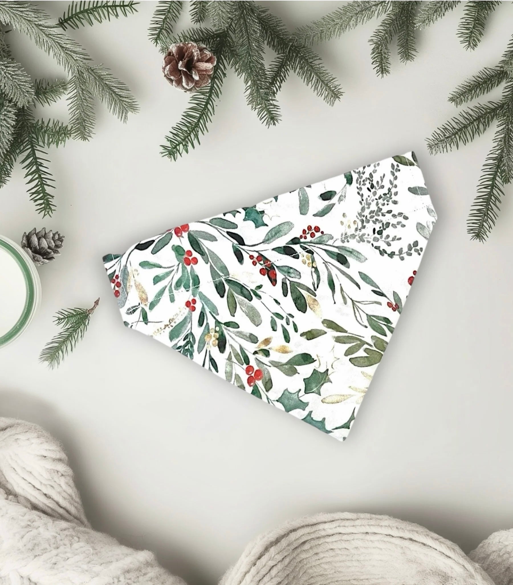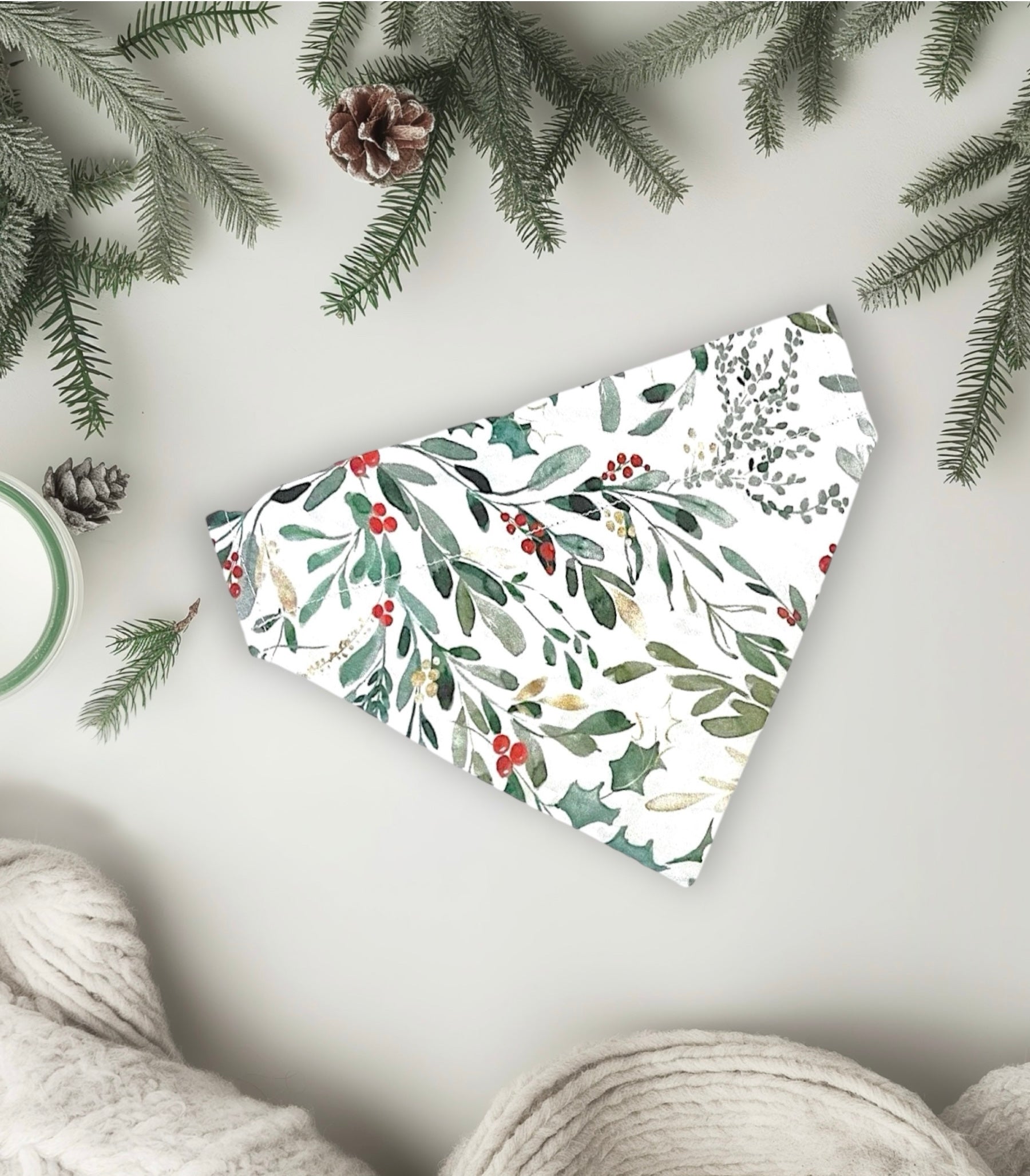 Christmas Dog Bandana or Cat Bandana -Holly Berry: Complement your Christmas decorations by dressing up your pet with our custom dog bandanas and cat bandanas! Each cat or dog scarf is handmade and customized to your pet's size.