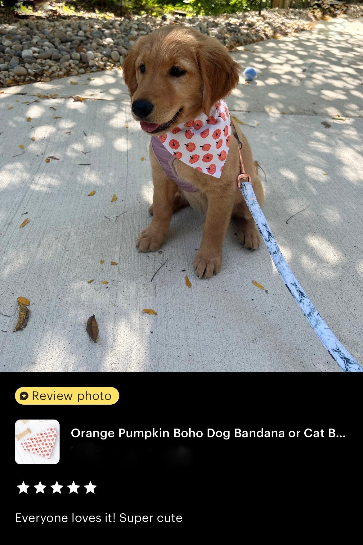 Fall dog bandana or cat bandana - white & orange boho pumpkin: Cat or dog bandanas for Halloween or Fall are the perfect pet accessories. Each autumn bandana dog scarf is handmade and slides easily over a cat or dog collar.