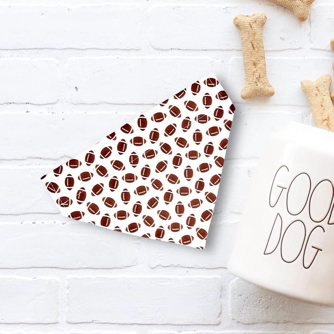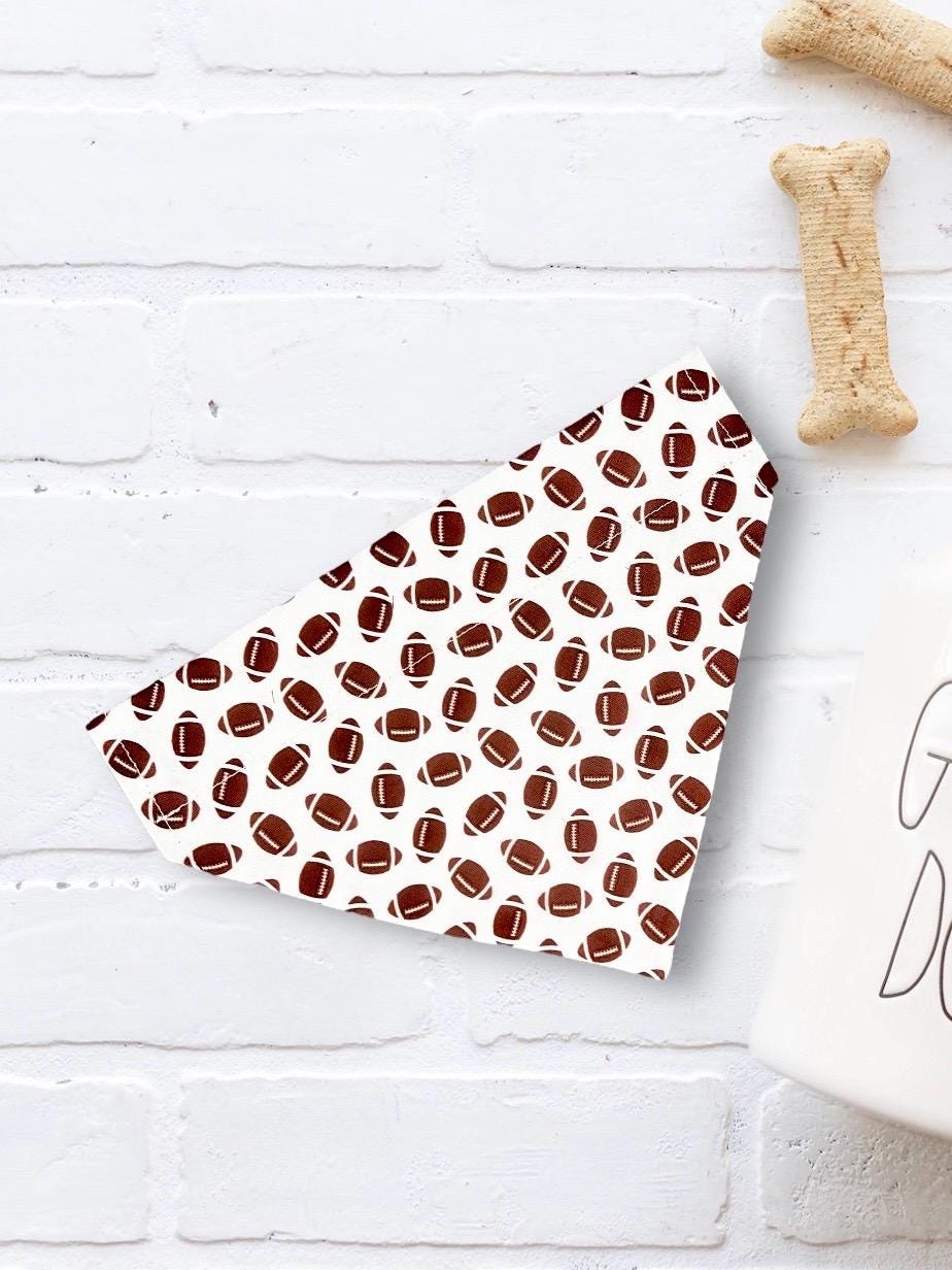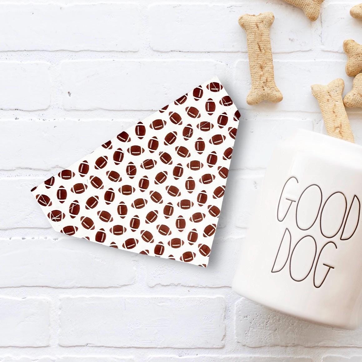 Get your pup game-day ready with this football dog bandana! Perfect for tailgates, Super Bowl parties, and watching the big game. This sporty dog bandana features fun football designs and easily slips over your dog’s collar for a secure fit. A must-have pet accessory for football-loving dog owners!