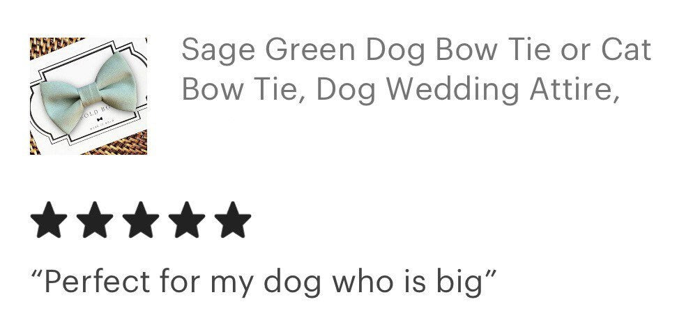 To get the best fit, please refer to our size chart. Each dog bow tie and bandana is handmade to fit your fur baby perfectly. Here’s a quick sizing tip: