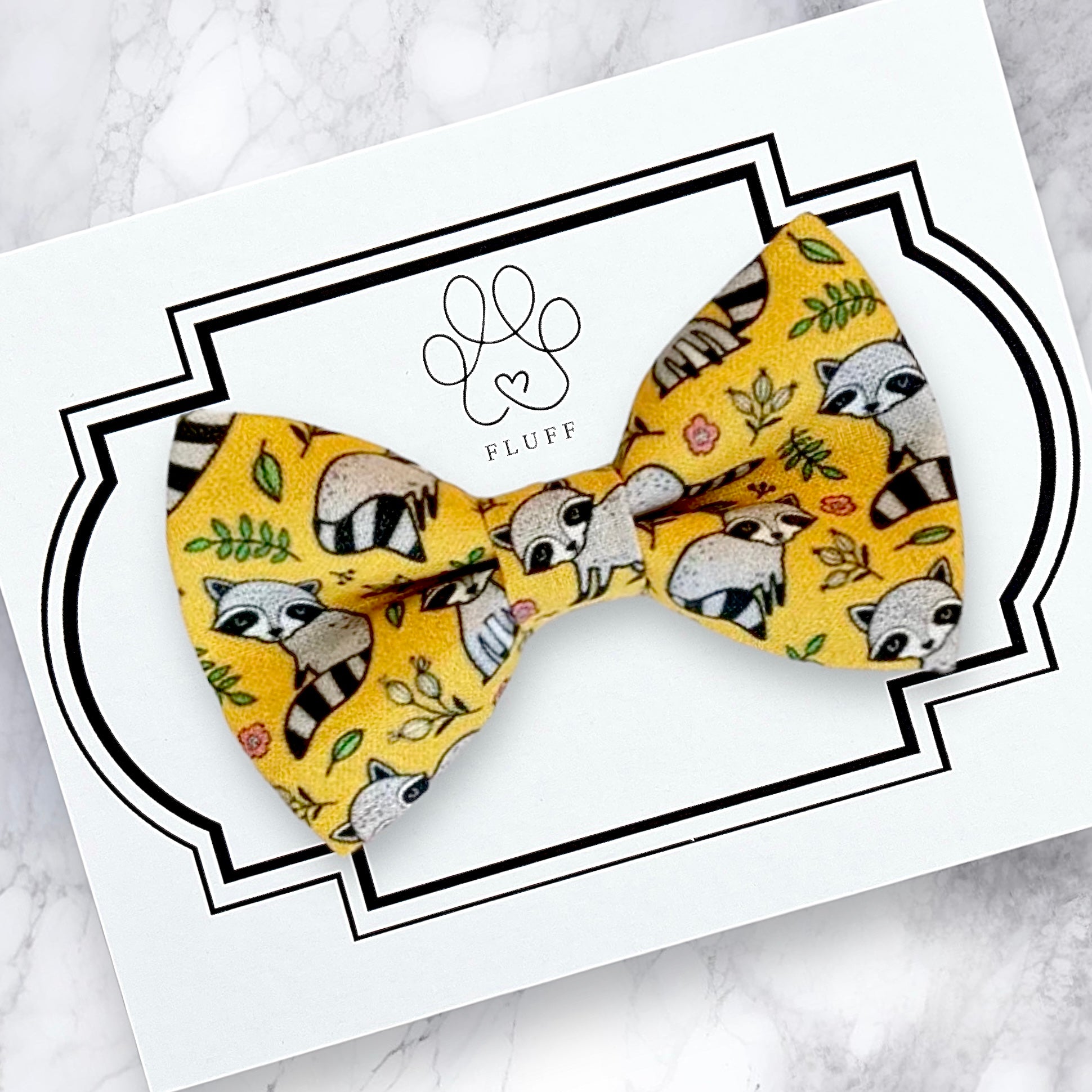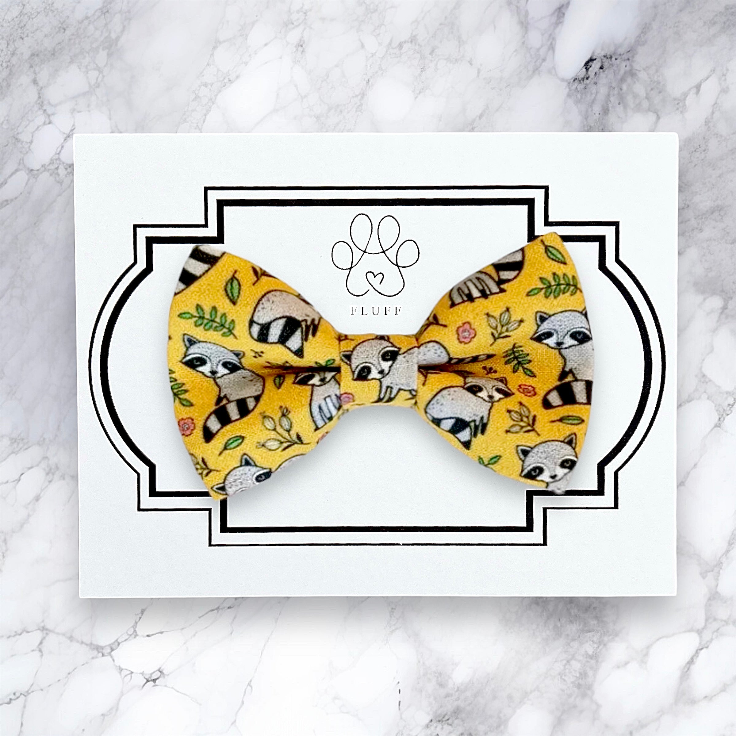 Dog Bow Tie or Cat Bow Tie- Yellow Mustard Raccoon