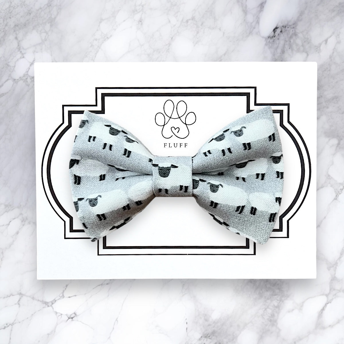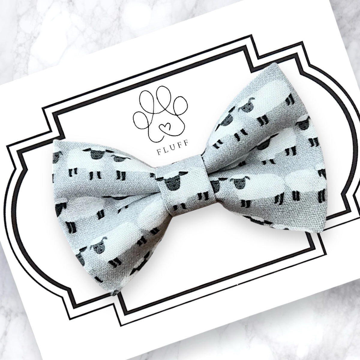 Sheep dog bow tie or cat bow tie slips easily onto a dog collar or cat collar with elastic to help them look their best! It is the perfect dog lover gift, dog bowtie, love is love bow tie for dogs, and Easter dog outfit!
