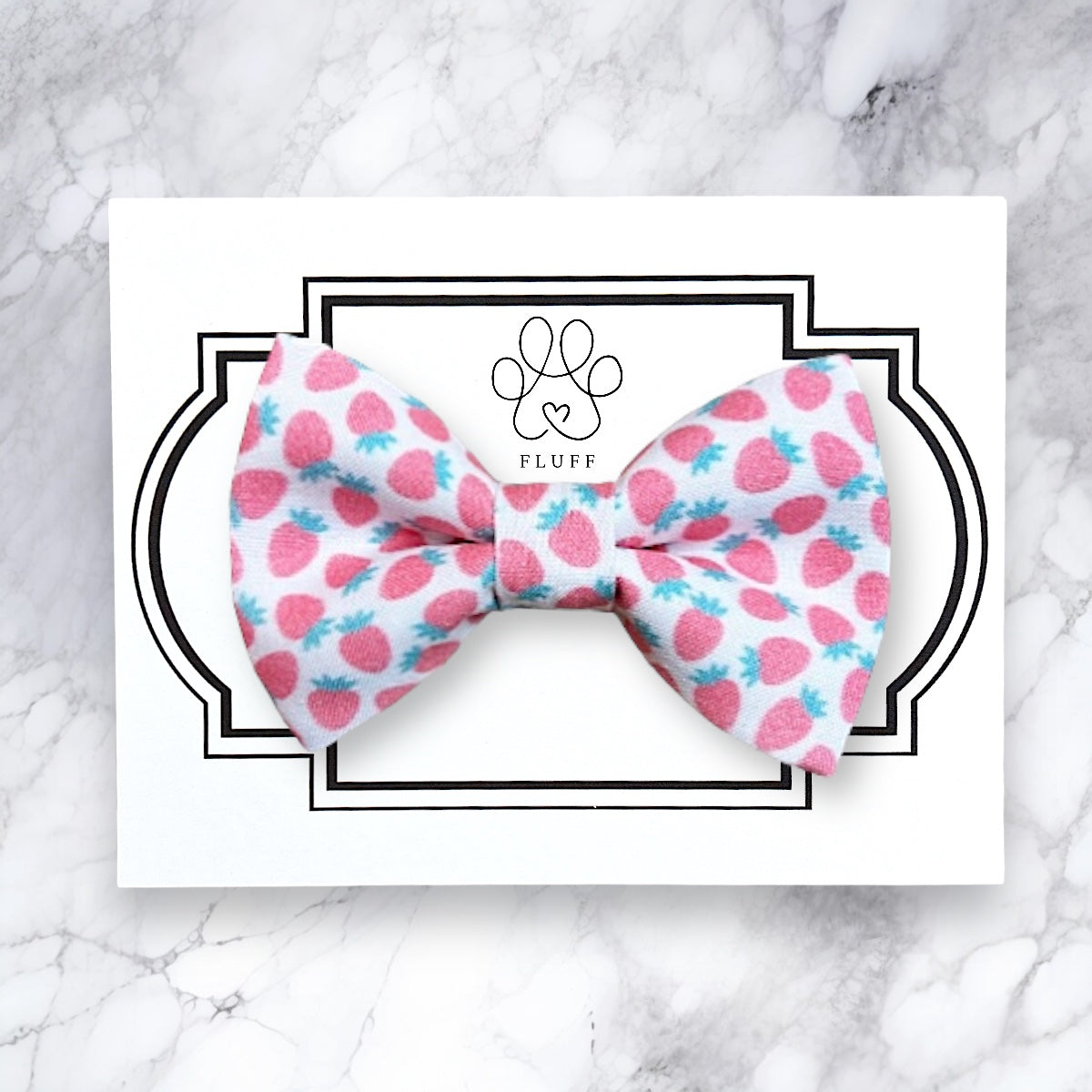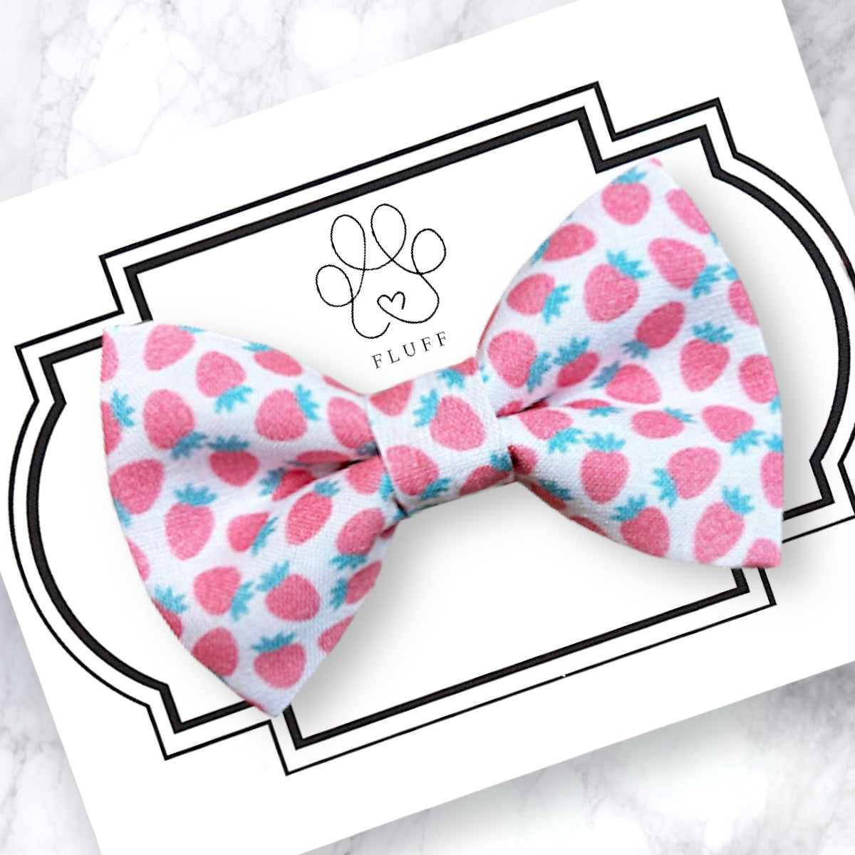 Strawberry dog bow tie or cat bow tie easily slips on a dog collar or cat collar with elastic! This bowtie features strawberries, perfect for summer, Strawberry Festivals, and strawberry themed birthday parties. It is perfect for a dog gift, bow tie for dogs, dog accessories, dog lover gift, cat gift, or any other special occasion!
