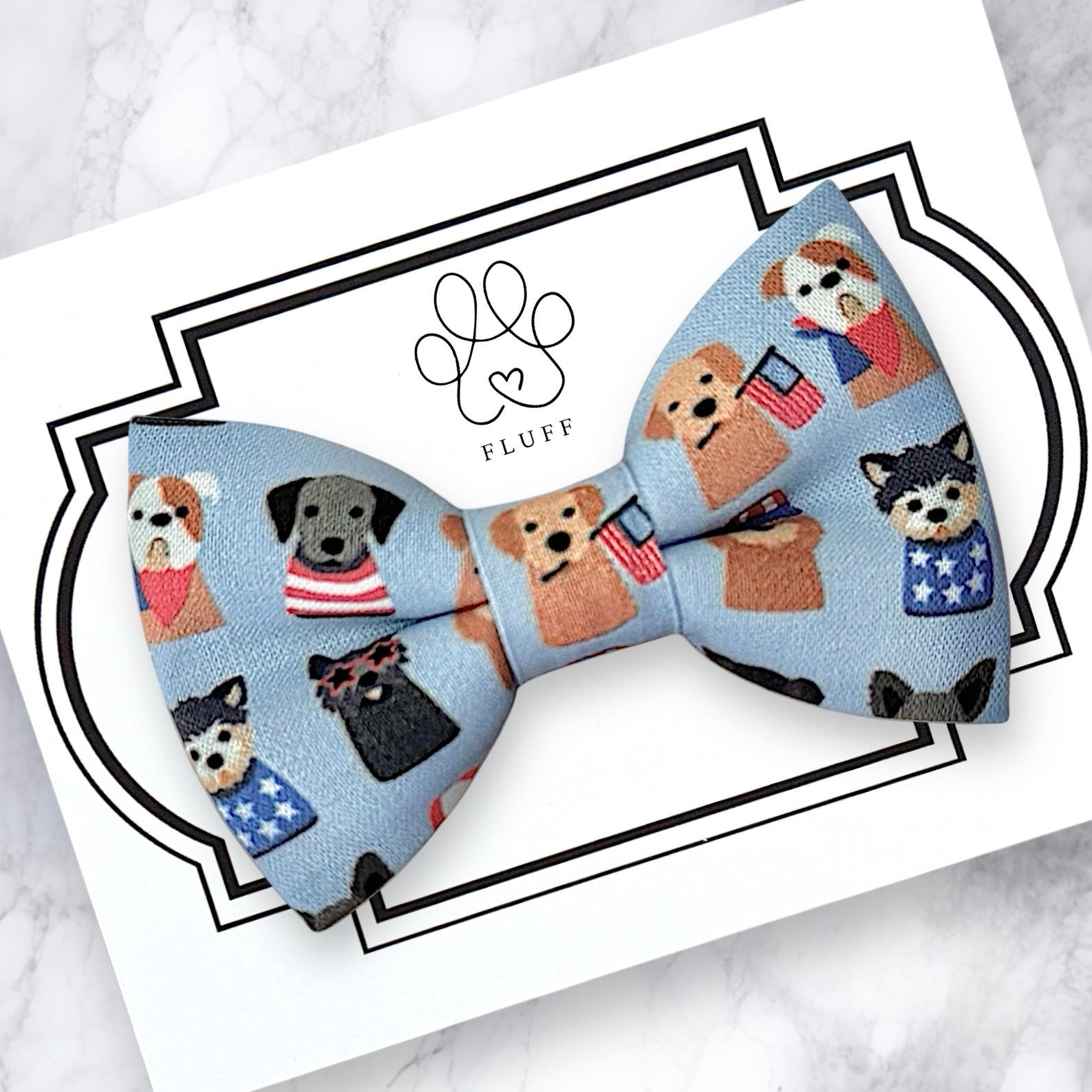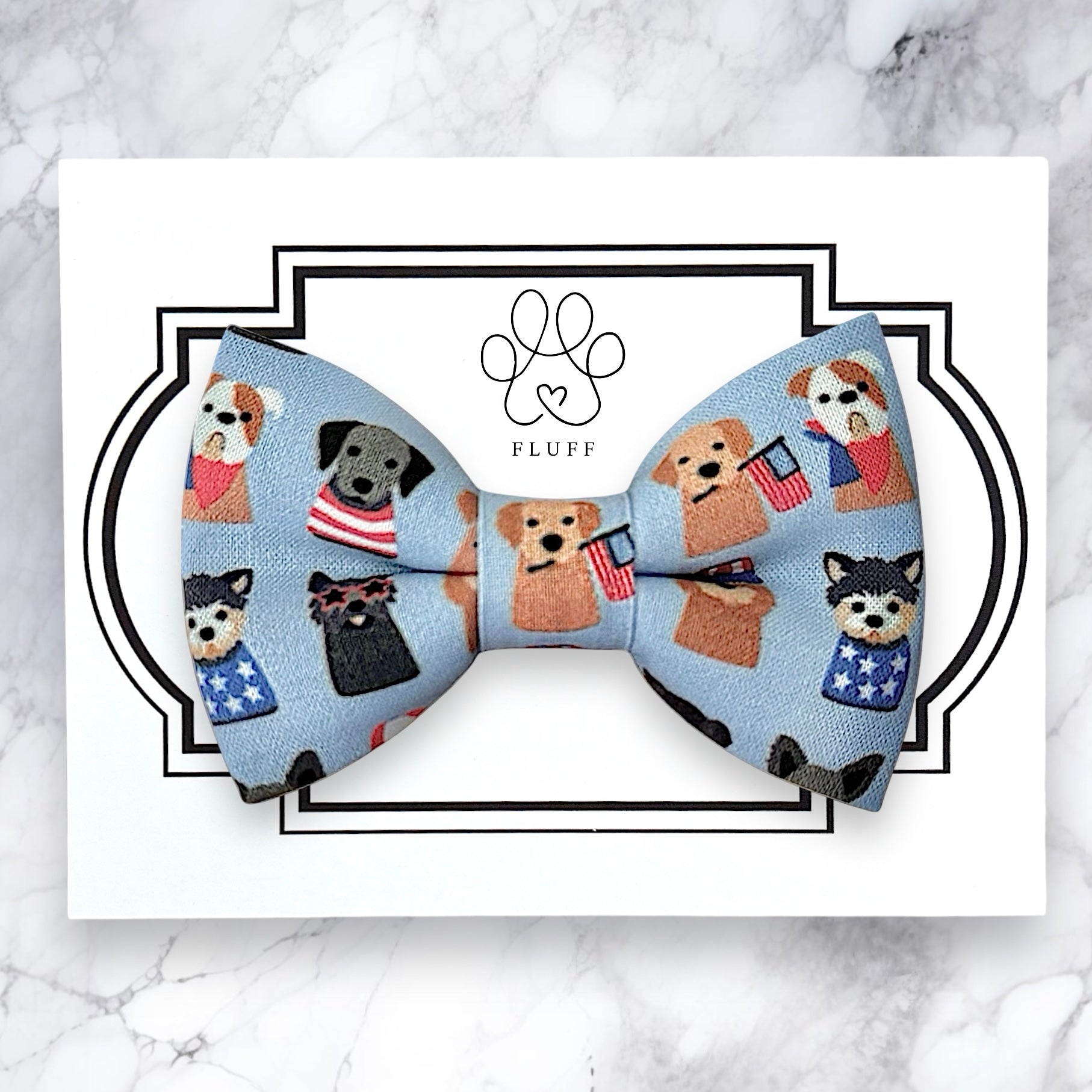Independence Puppies Dog Bow Tie: Dress up your pup for the 4th of July with a festive dog bow tie! This cute puppy bow tie is perfect for Fourth of July fun and a must-have dog tie!