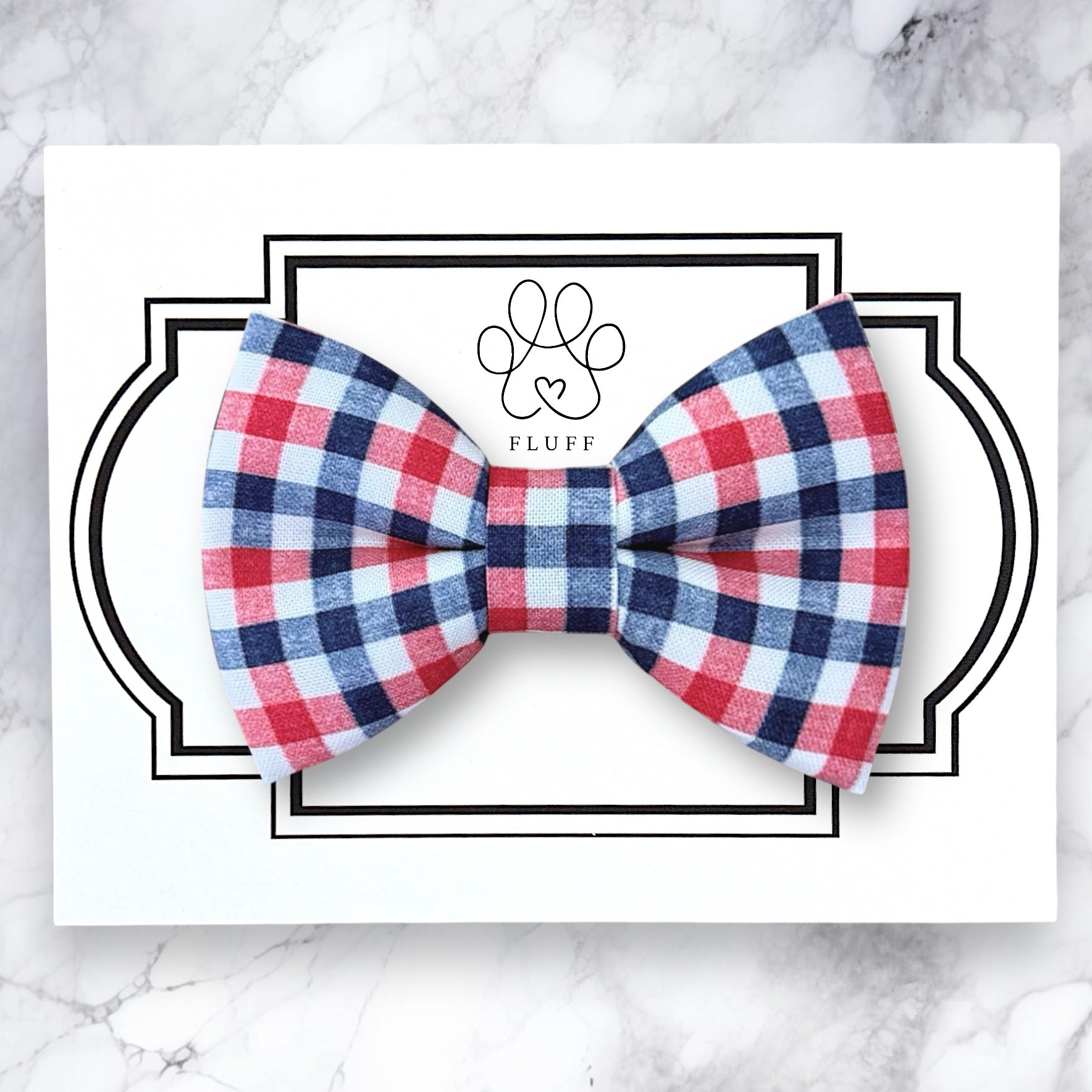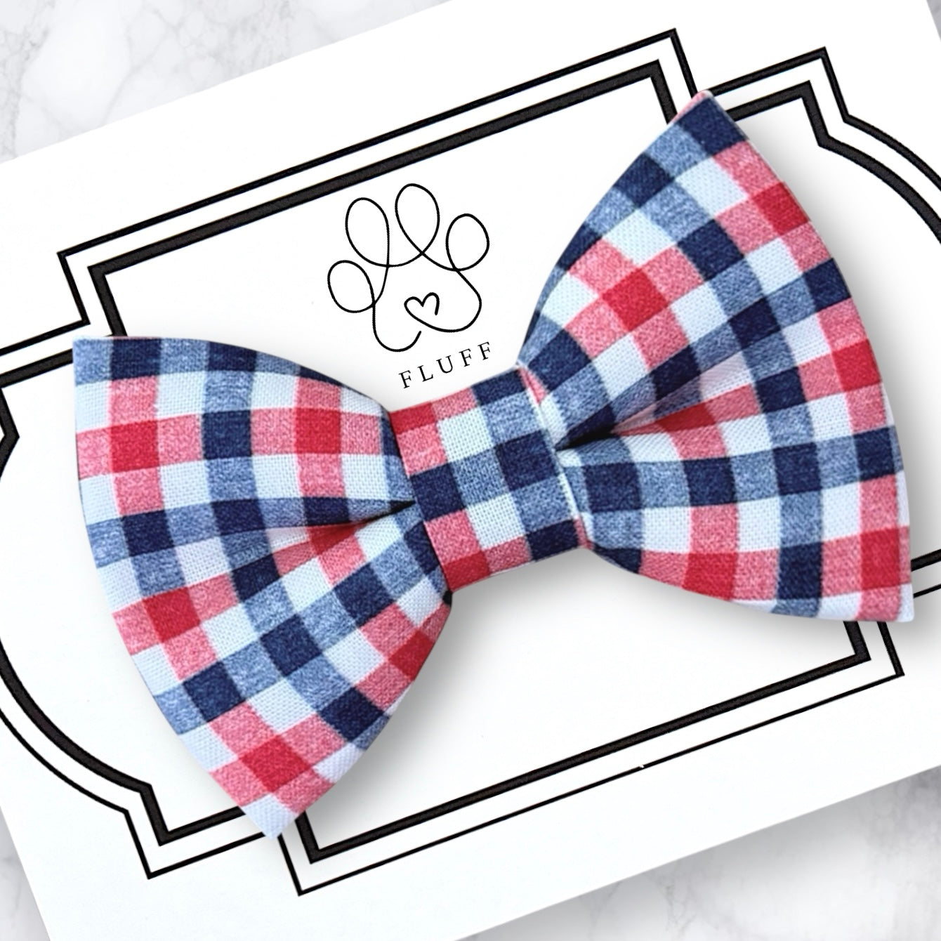 Red White and Blue Gingham Dog Bow Tie or Cat Bow Tie- get ready for Fourth of July fun! This festive pet bow tie slips easily on a dog collar or cat collar to help them celebrate the 4th of July!