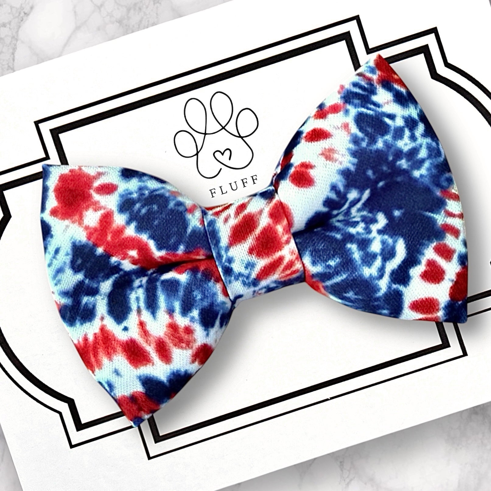 Tie Dye 4th of July Pet Bow Tie: Treat your dog or cat on the Fourth of July! This stylish dog bow tie or cat bow tie is perfect your furry friend! Perfect for festive dog bowties, dog ties, puppy bow tie, or ties for cats—adorable and comfortable!