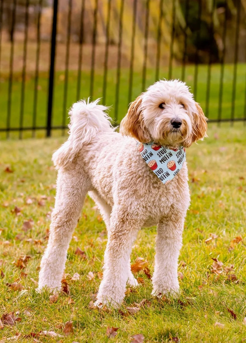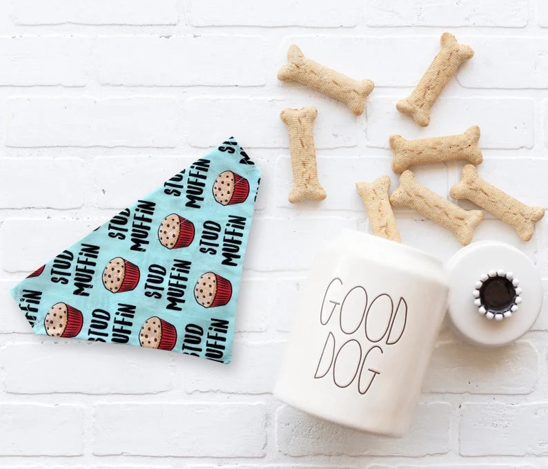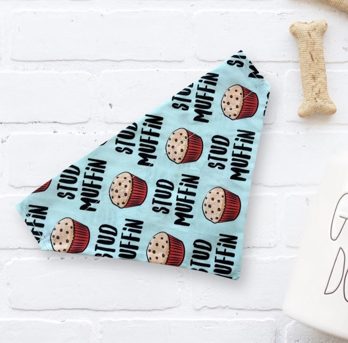 Valentine's Day dog bandana or cat bandana - blue stud muffin: Cat or dog bandanas for Valentine's Day are the perfect pet accessories. Each Valentine dog bandana dog scarf is handmade and slides easily over a cat or dog collar. Excellent Valentine bandana for your furry friend!
