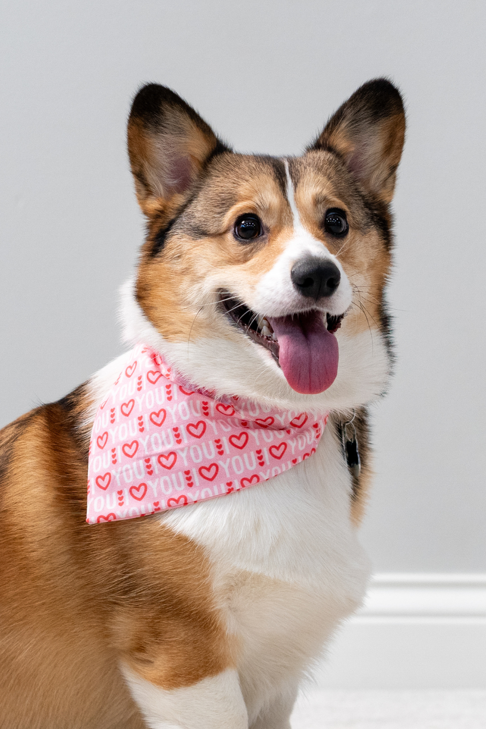 Valentine's Day Dog Bandana or Cat Bandana- Pink I Love You