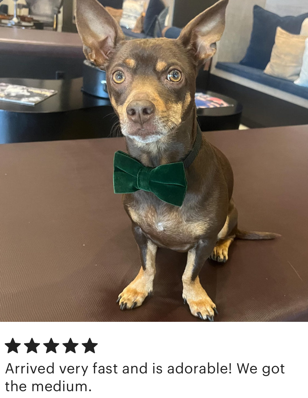Green Velvet Dog Bow Tie or Cat Bow Tie is PERFECT for dog wedding attire, a dog ring bearer or dog bowties as a gift!
