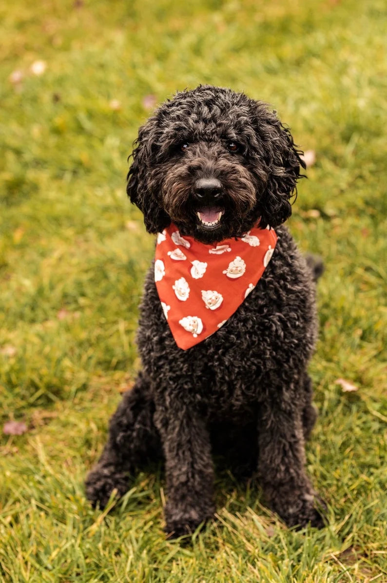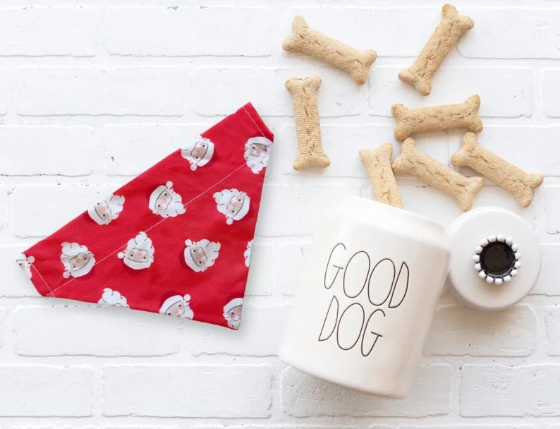 Christmas Dog Bandana or Cat Bandana - Red Santa: Complement your Christmas decorations by dressing up your pet with our custom dog bandanas and cat bandanas! Each cat or dog scarf is handmade and customized to your pet's size.