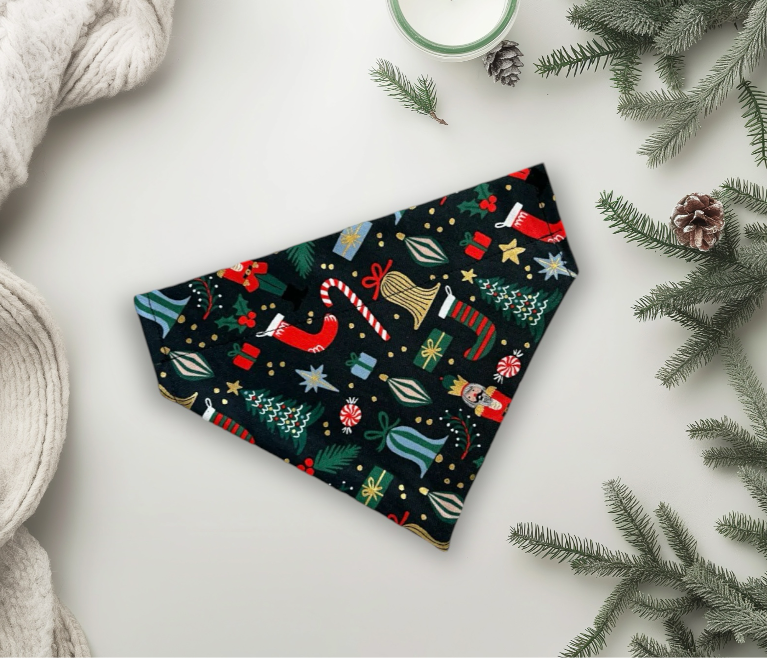 Christmas Dog Bandana or Cat Bandana -Whimsical: Complement your Christmas decorations by dressing up your pet with our custom dog bandanas and cat bandanas! Each cat or dog scarf is handmade and customized to your pet's size.
