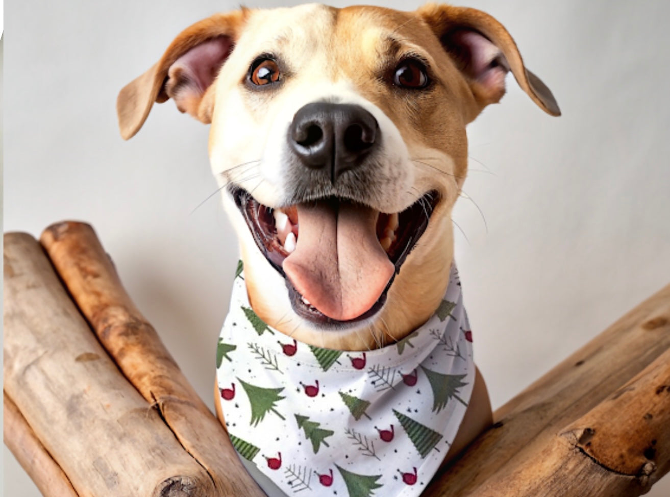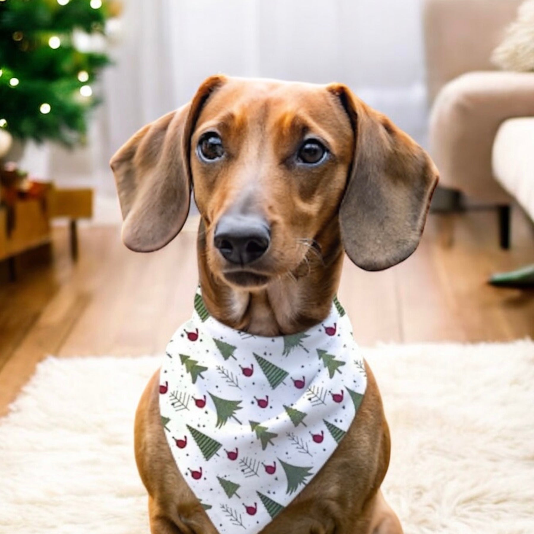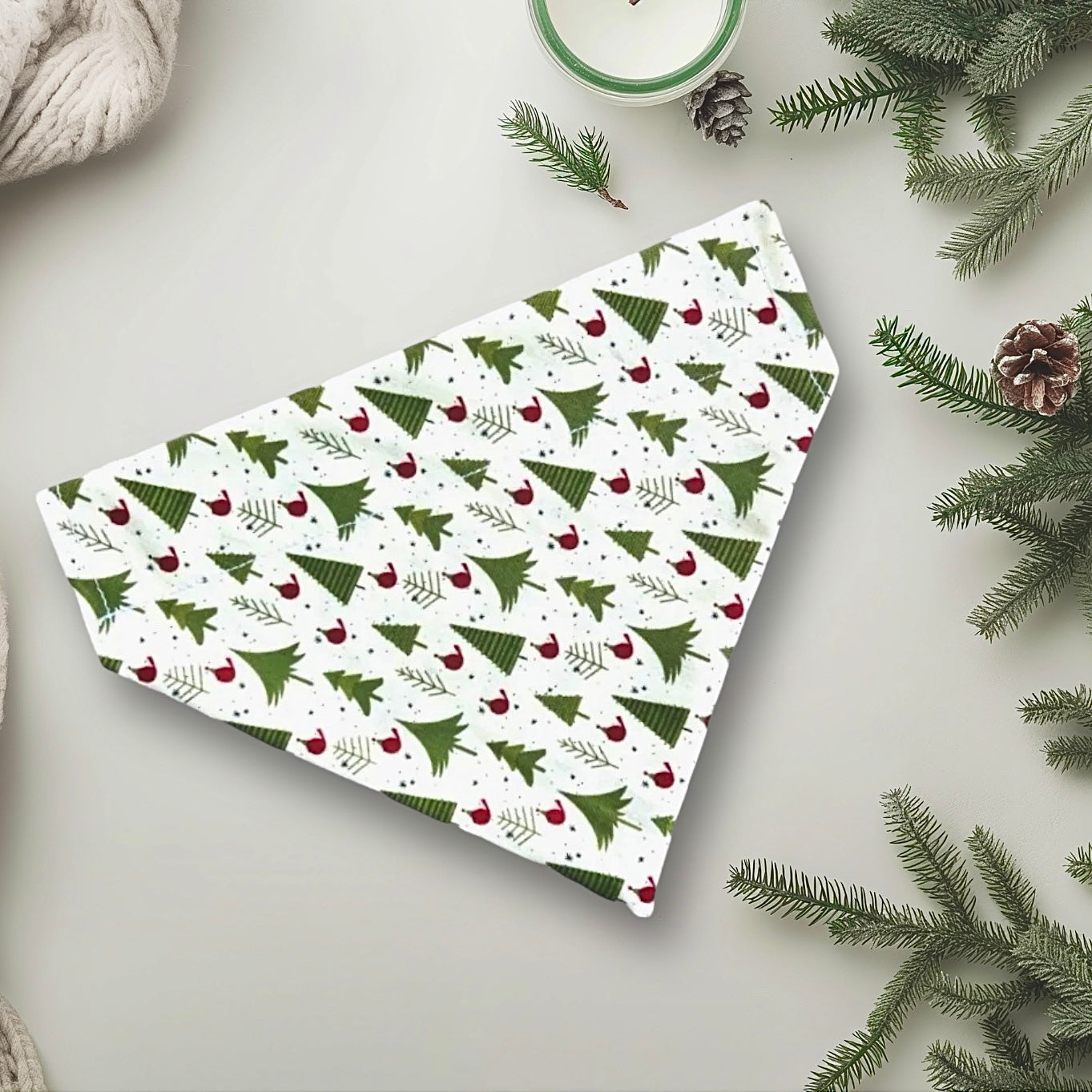 Christmas Dog Bandana or Cat Bandana -Red & Green Christmas Trees: Complement your Christmas decorations by dressing up your pet with our custom dog bandanas and cat bandanas! Each cat or dog scarf is handmade and customized to your pet's size.