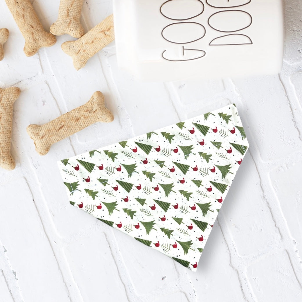 Christmas Dog Bandana or Cat Bandana- Red & Green Christmas Trees