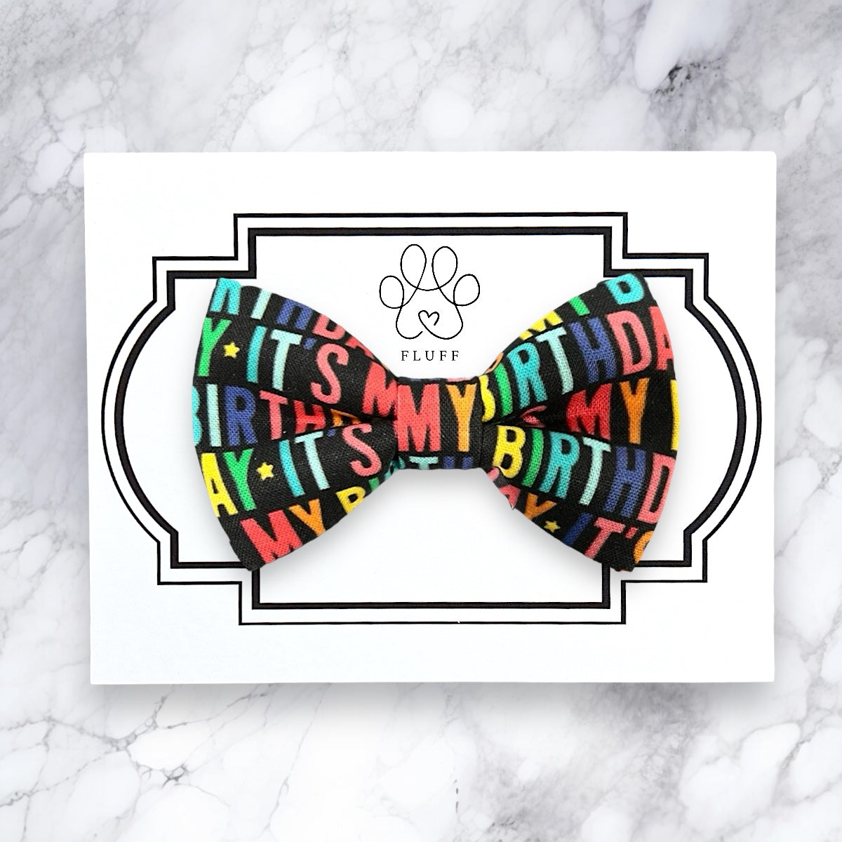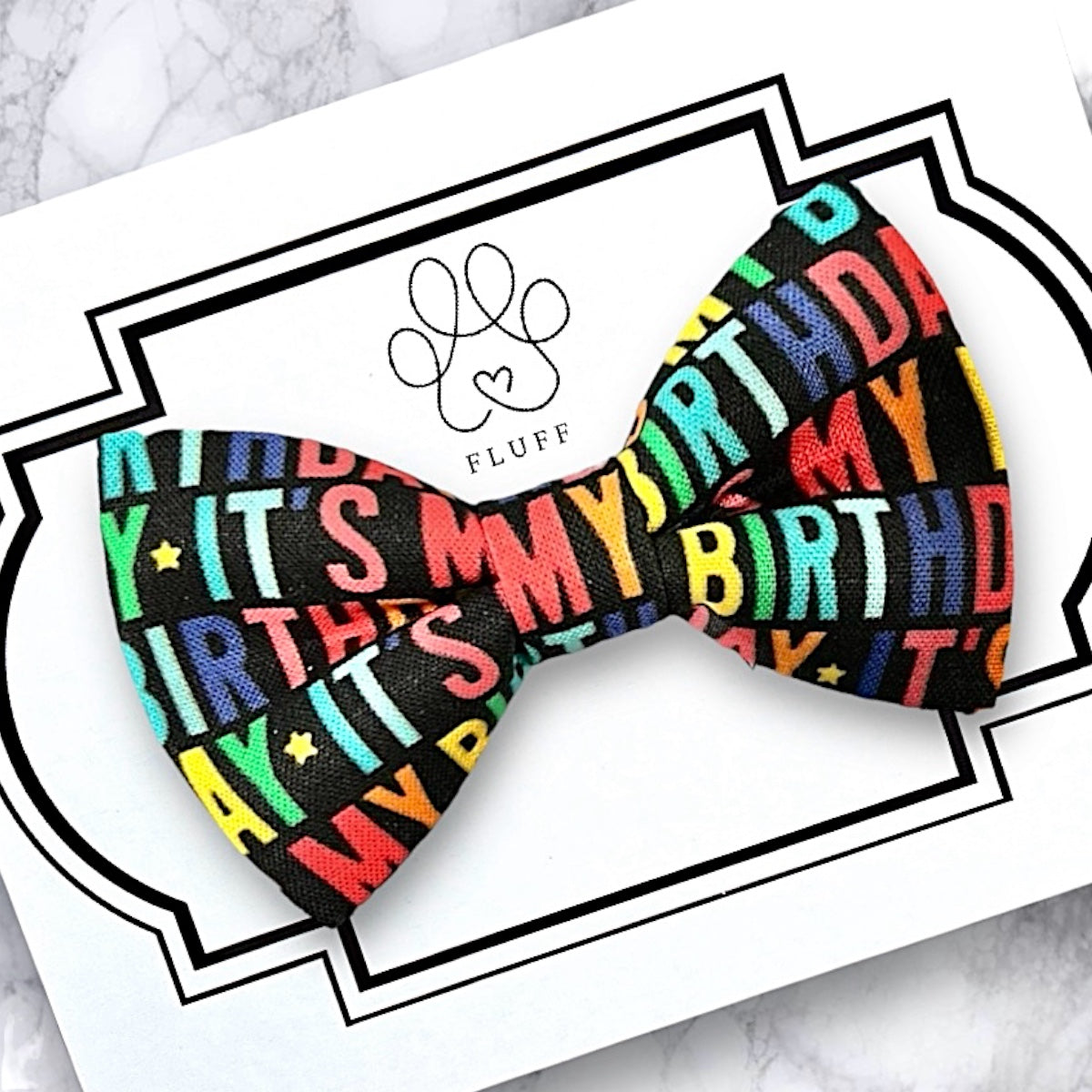 This Birthday Dog Bow Tie or Cat Bow Tie slips easily on to a collar with elastic and is PERFECT for a Birthday dog gift, cat gift , dog bow tie for birthday, or dog accessories to celebrate your pet’s big day!